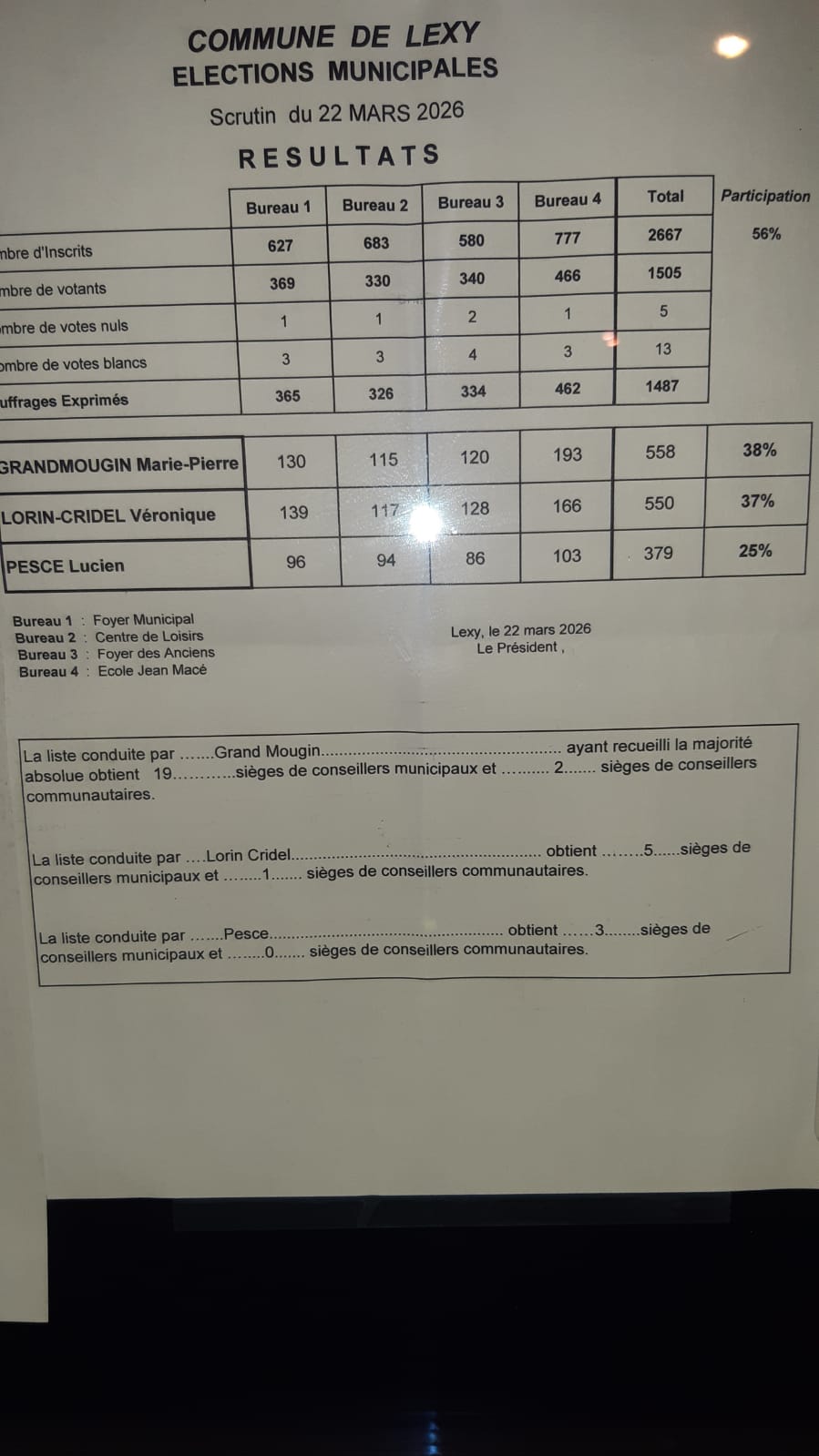 Merci à l’ensemble des électeurs pour leur participation.